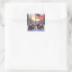 Snowman Family Gathering Around a Flagpole Quadratischer Aufkleber