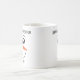 Der niedliche Schneemann steht vor einer Kaffee-Tasse, die mit Ihrem Familiennamen oder Kindernamen personalisiert werden kann, die sich perfekt für Weihnachten oder Hanukkah eignet oder für alles, was Sie während der Ferien feiern.