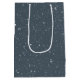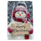 Snowman hält ein fröhliches Weihnachtszeichen Mittlere Geschenktüte