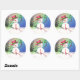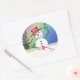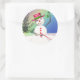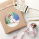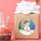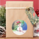 Aufkleber mit meinem digitalen Kunstwerk eines Schneemanns, der einen roten Hut trägt, der "Frohe Weihnachten" sagt, während er Misteloe und einen Bonbons hält.