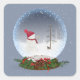 Schneemann mit goldenem Weihnachtsstern für alten Kiefernbaum in einer Schneekugel. Schneeflocke-Overlay