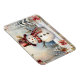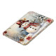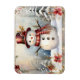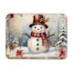 Ein lächelnder Schneemann in einem roten Hut und Schal ist umgeben von schneebedeckten Bäumen und Blume auf diesem niedlichen und charmanten Magneten. Perfektes kleines kleine Geschenk!