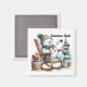 Ein skurriler Schneemann schließt seinen Tag mit einem Schaukelstuhl ab, der den Satz "Snowmen Rock" verkörpert. Er ist mit einem Zweig beschäftigt, der einen Weihnachtsbaum mit Ziergegenständen schmückt. Neben ihm ist ein Korb voller Leckereien, alles Set gegen eine winterliche Kulisse auf diesem Feiertagsmagneten.