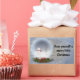 Schneemann in einer Schneekugel mit Kiefern und Beeren. Text wird bearbeitet