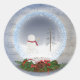 Schneemann in einer Schneekugel mit Kiefern und Beeren.
