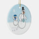 Ein niedlich Kackend Schneemann und Zeuge der Schneefrau für die Ferien Schmuck. Sieht gut aus auf Ihrem Weihnachtsbaum oder hängt von Ihrem Rückspiegel. Ein großes Lachen für die Ferien.