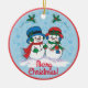Personalisieren Sie dieses einzigartige "Eine von einer Art" Weihnachtsschmuck! Herr & Mrs. Frosty Der Schneemann macht einen zauberhaften Weihnachtsspaziergang durch ein "Schneewinterwunder"! Original Fine Art Design von Künstler Kerry Miller.