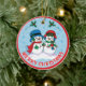 Personalisieren Sie dieses bezaubernde Weihnachtsschmuck "Eine von einer Art"! Herr & Mrs. Frosty Der Schneemann macht einen zauberhaften Weihnachtsspaziergang durch ein "Schneewinterwunder"! Original Fine Art Design von Künstler Kerry Miller.