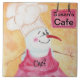 Trivet mit einem Schneemann-Koch in der Hut eines Koch und der roten Schürze mit einem personalisierten Zeichen im Hintergrund. Originelle Kunst inspiriert von Visages' eigenen Cookie Panda auch von Deborah Miller