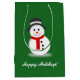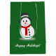 Lächelnd und niedlich, dieser kleine Schneemann bringt Geschenke für Weihnachten! Diese farbenfrohe, doppelseitige Geschenktasche ist ideal für kleine bis mittelgroße Geschenke. Dieses Design ist auch als Postkarte, Aufkleber, Geschenkpapier und Kaffee-Tasse erhältlich!
