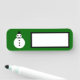 Dieses phantastische Namensschild für Trockenleere zeigt einen lächelnden weißen Weihnachtsschneemann mit schwarzen Tasten und einem Top-Hut. Er sieht aus wie ein cooles Genie und würde die Liebe, Ihnen zu helfen, die Weihnachtsfreuden in diesem Jahr zu verbreiten. Der Hintergrund ist ein festlicher Schatten von Grün.