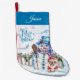 Ein bezaubernder Strumpf der Fleece wird Familie und Freunde mit einem bunten Schneemann und seinem Hund in einem Santa Anzug Freund begrüßen, während sie einen Schneefall genießen. Personalisieren Sie dies mit einem Namen, bevor Sie sich in Ihren Warenkorb legen.