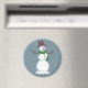 Ein fröhlich aber kühl aussehender Schneemann trägt in dieser winterlichen Illustration von Richard H. Fay einen rot gerippten Oberhut und grünen Schal.
