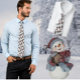 Foto eines lustigen Weihnachtsschmucks - ein Schneemann, der ein Vogelhaus hält - schmückt diese Krawatte, dass man den ganzen Winter lang tragen kann