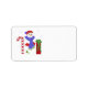 Ein tolles Urlaubsetikett mit einem fröhlichen Schneemann, der sich gegen einen großen Bonbonstock lehnt, und einem großen roten Geschenk mit einem großen grünen Bogen neben ihm. Passen Sie Ihre Daten auf Wunsch an.
