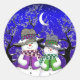 Der Schneemann und sein Freund standen unter den Bäumen, die auf den Mond schauten.