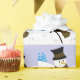 Ein lustiges Design mit einem niedlichen Schneemann in einem Top Hut und einem Stock. Schneeflocken fallen.