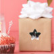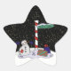 Der Schneemann ist mit blauen Handschuhen und Knöpfen gekleidet. Der Schneemann ist neben einem weißen und roten Pol mit einem grünen Schild stehend, auf dem "Nordpol" steht. Die Geschenke sind neben dem Pol. Weißer Schnee liegt auf dem Boden. Die Aufkleber sind mit weißem oder schwarzem Hintergrund erhältlich.