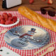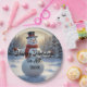 Teller mit Schneemann-Design und "Happy Holidays" zu Gruß. Sie aktualisieren das Datumsfeld an der Eingabeaufforderung. KI erzeugte Kunst.