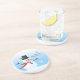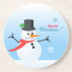 Snowman Untersetzer mit einem weißen Schneemann, der einen schwarzen Hut mit grünem, heiligen Blatt und einem roten Schal trägt und den Schnee genießt. © Morning 6