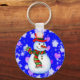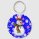 Lieblicher Schneemann, Sterne und Herzen im blauen Hintergrund. Lieblicher Schlüsselanhänger, so schön wie Weihnachten Geschenk!