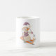 Ein Schneemann mit Ski, Pfosten und Hut. Dieses Design sieht auf dieser Tasse wirklich effektiv aus