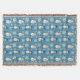 Diese niedliche Wurfdecke zeigt ein lustiges Muster mit einem Cartoon-Schneemann, einer in einer Strumpf-Kappe gekleidet und der andere in einem Top-Hut, und beide mit Nackenschals und Fäusten. Das Schneepaar wird auf der Oberfläche auf einem hellblauen Hintergrund wiederholt, um den sich die Blüten hellblauer und cremefarbener Schneeflocken drehen. *Dank Real Deal Clipart für den Clipart, der dieses Design erstellt hat.