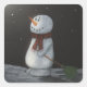 Dieser Snowman Sticker hat einen farbigen Bleistift, der einen Schneemann zeichne, der auf den Mond und die Sterne blickt.