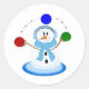 Ein niedlicher Schneemann wirft Kugeln in die Luft.