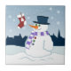 Snowmanillustration in einer Weihnachtsszene mit seinem eigenen persönlichen Strumpf, der verdübelt wird und von einer waschenden Linie gehangen ist.