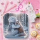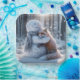 Ein Schneemann begrüßt einen schneebedeckten Fuchs, der von einem ruhigen Winterwald umgeben ist