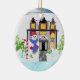 Freuen Sie sich auf einen Schneemann und einen Bonbonstock vor diesem lustigen, schneebedeckten Ferienhaus mit Bäumen und sogar einem Kranz an der Tür. Ein skurriles Design für den Baum. Passen Sie Ihre Wünsche an.