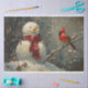 Snowman und ein Kardinal Ölgemälde Decoupage Seidenpapier