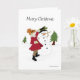 Snowman und Kleines Mädchen in einer Red Coat Card Karte