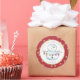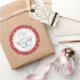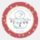 Fest Rot und Gold "speziell für Sie gemacht" Aufkleber mit meinem leichtem Aquarellschneemann, der eine Reihe farbenfroher Urlaubslichter hält. Personalisieren Sie Text wie gewünscht.