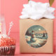 Auf diesem Aufkleber befindet sich ein bemalter Schneemann in einer Winterlandschaft. Es sieht Vintag aus und ist sehr niedlich, sodass es eine nette Ergänzung zu einem Weihnachtsgeschenk oder Weihnachtskarte sein wird. Es wird von jedem geschätzt, der Retro-Designs und süße Schneemänner mag.