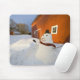 Snowman vor der roten Scheune in Columbia Falls Mousepad