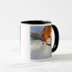 Snowman vor der roten Scheune in Columbia Falls Tasse