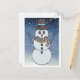 Schneemann, der so aussieht, als wäre es Häkelchen mit schneebedecktem Hintergrund.
