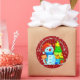 Snowman Weihnachtsbaum präsentiert Jahr Text rot Runder Aufkleber