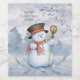 Niedlicher Wasserfarbenschneemann mit seinem Besen im Schnee mit dem Jahr und Gruß. So niedlich für Ihren Urlaubstisch oder ein Zuhause-Geschenk für alle Ihre Familie und Freunde. Sehen Sie sich passende Servietten und andere Begleitartikel an, um Ihr Thema zu ergänzen.