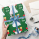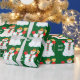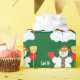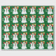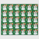 Wrapping paper with cute snowmen wearing a floppy hat, red mittens and colorful scarf. The images, background and text can be personlaized. Original artwork by W.B.