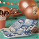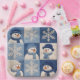 An enchanting pattern filled with delightful snowmen and sparkling snowflakes, beautifully set against a blue and white quilt background
