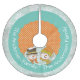 Snowmen Dots and Snowflakes Urlaubskirt mit einem schönen Design von weichen weißen Schneeflocken auf hellblau, einem Ring von solidem Aqua blau, einem Orangenring mit weißen Polka-Punkten und einem niedlichen Schneemannpaar! Sie können einfach Ihren Familiennamen oder anderen Text zu diesem schönen, Vintagen Snowman-Urlaubspferd hinzufügen. Dieser schöne Weihnachtsbaumrock wird noch viele Jahre lang geschätzt!