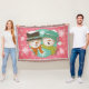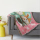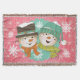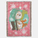 Schneemänner Pink und Blau Urlaubsdecke, so hübsch und farbenfroh, zeigt eine weiße Schneeflocken auf rosa Hintergrund mit einem aqua blauen Kreis mit weißen Punkten und jede Seite hat ein lächelndes Snowmannpaar mit Hut, Schal, Karottennase und Schneeflocken!