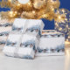 Dies ist eine Urlaubspensionspapiere mit niedlichen Schneemännern und Rentieren, die um Tannen tanzen. Das Farbschema ist kalte Blues.