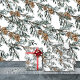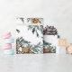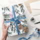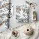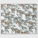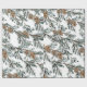 Ein neutrales Winterurlaubsverpackungspapier mit wasserfarben bemalten Wacholdernästen mit Kiefernzapfen und einem leichten Staub von Schneeflocken. Ein klassisches Weihnachts-neutrales Geschenkpapier.