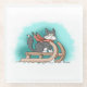 Snowy Cartoon Cat on Sled with Scarf Glasuntersetzer