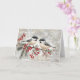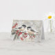 Snowy Chickadees auf Evergreen mit Berries Beschreibung: Zwei Kichaden auf einem immergrünen Zweig mit roten Beeren und Schneeflocken, Set auf einem weichen, grauen, gemusterten Hintergrund, der einen Vintagen Charme verleiht. Tags: Schneekicherchen, immergrüner Zweig mit Beeren, Vintages graues Papier, Schneeflocken und Vögel, Kabinenillustrierung, strukturierte Hintergrundkunst, rote Beeren Winter, Wintervogelszene, rustikales Schneeflockendesign, gemütliche immergrüne Kunst.