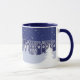 Eine handgezeichnete Tasse mit einem friedlichen Schneeschuhabend in einem gemütlichen Dorf. Mit sanft beleuchteten Häusern und einem festlichen Winterambiente ist diese Tasse ideal, um während der Ferienzeit oder als charmantes Weihnachtsgeschenk warme Getränke zu genießen.